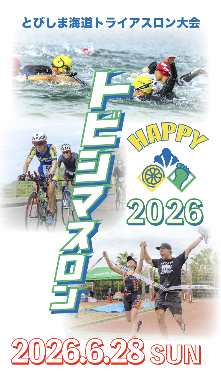 「とびしま海道」と競技を意味する「アスロン」を組み合わせて名付けました。前回はデュアスロン大会として開催しましたが、今回はオリンピックディスタンスのトライアスロン大会として開催します。
